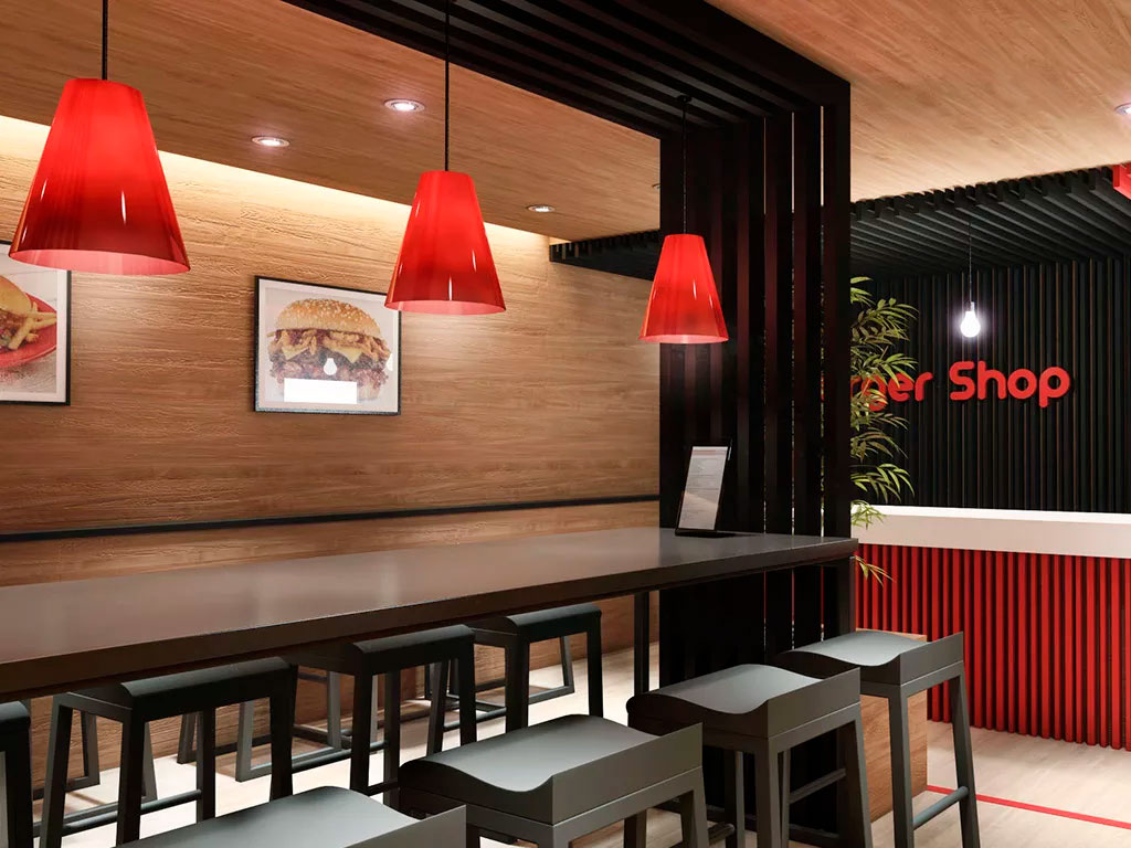 Грамотно продумать оформление будущего кафе, подсчитать необходимые вложения и исключить серьезные ошибки в обустройстве помогает дизайн-проект бургерной. Еще на этапе составления плана выбираются все вышеупомянутые элементы дизайна, подбирается наиболее оптимальные сочетания цветов, фактур, декора. В результате этого дизайн-проект позволяет рассчитать расходы на обустройство, минимизировать расходы на случаи «непредвиденных» ошибок и создать наиболее выгодный интерьер, который будет работать на привлечение большого количества посетителей.