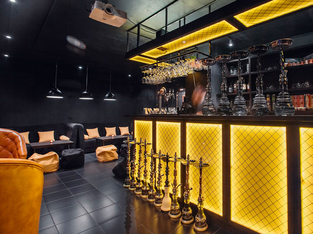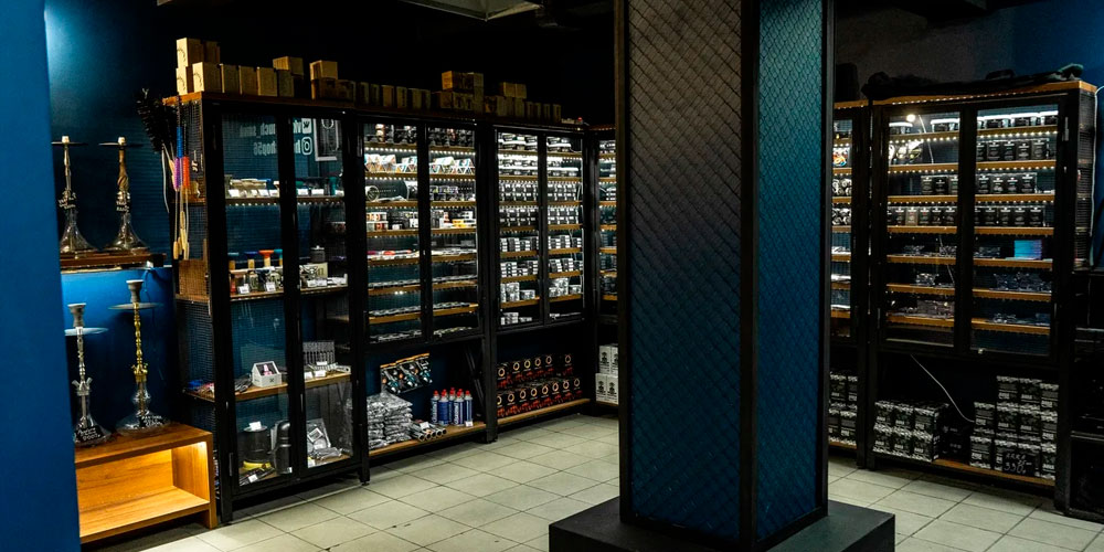 Дизайн торгового помещения должен отличаться от убранства кальянных, где посетители привыкли расслабляться и отдыхать. В магазинах же покупатель должен с первой минуты концентрировать свое внимание на предлагаемой продукции. Поэтому даже на входе в торговый зал не должно присутствовать ярких и отвлекающих элементов.