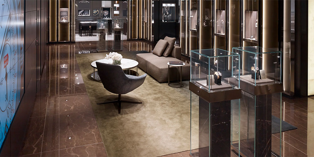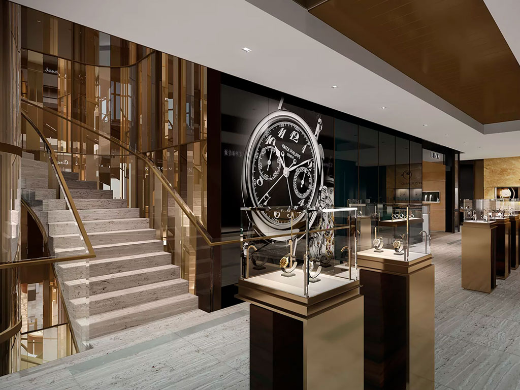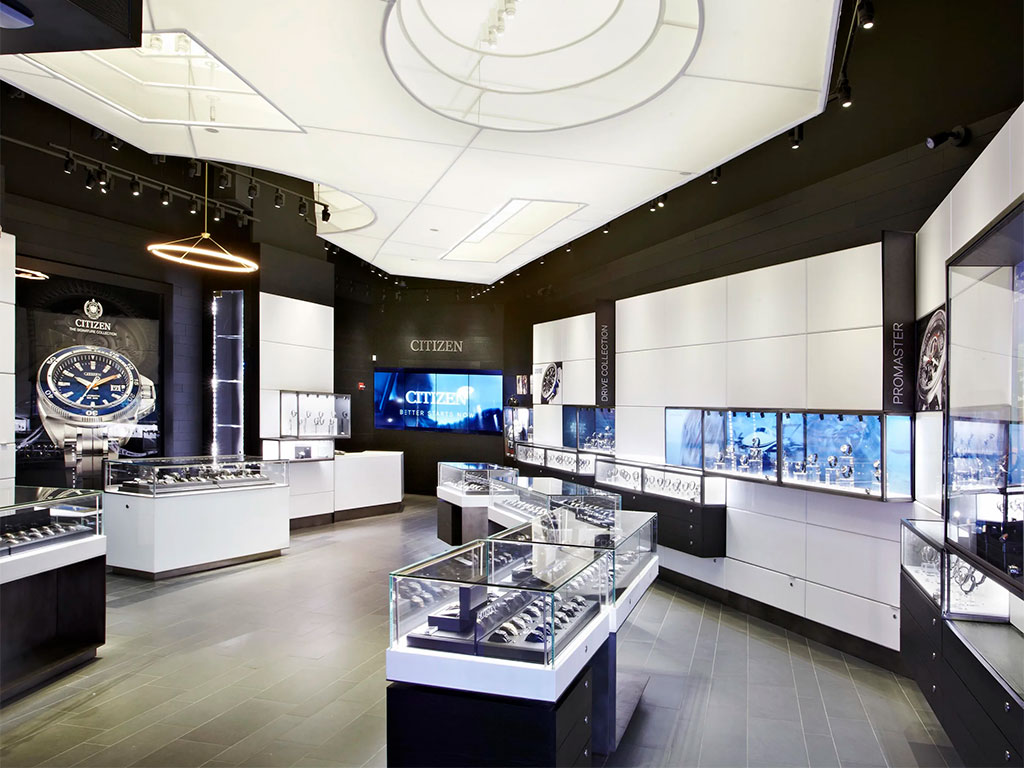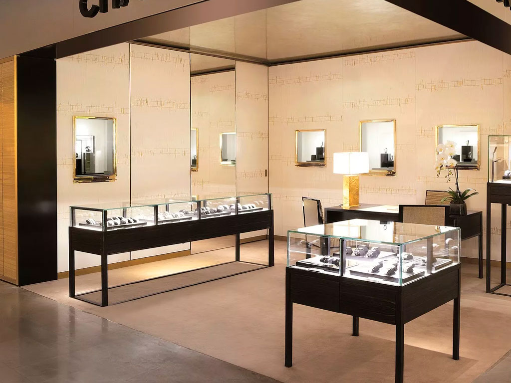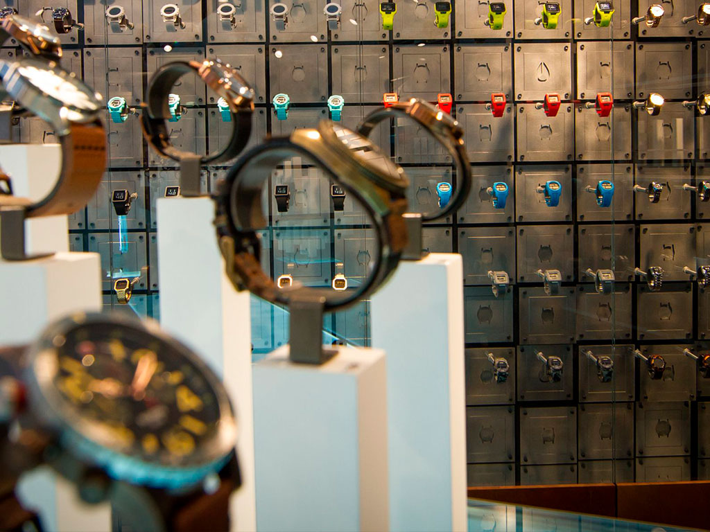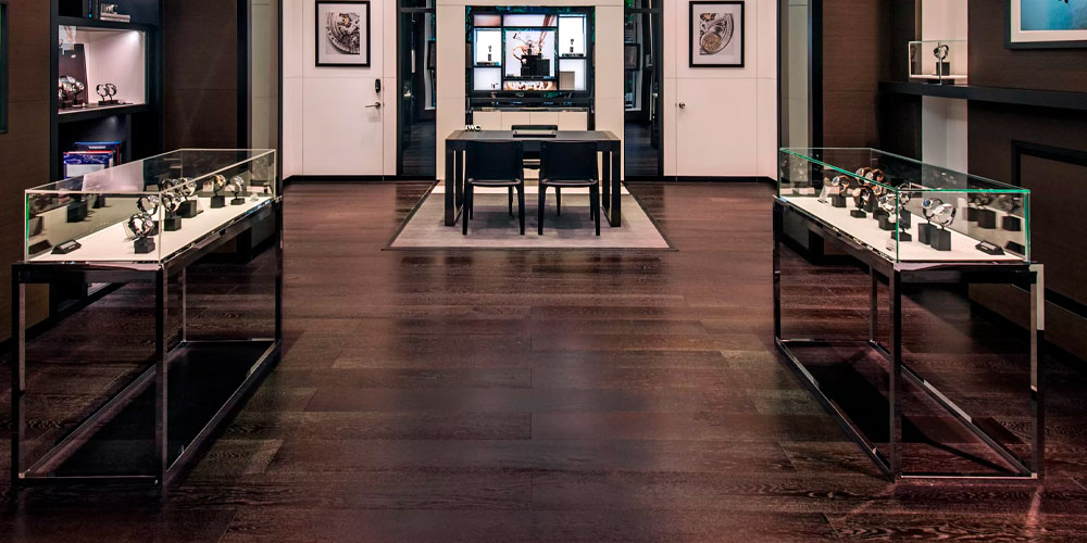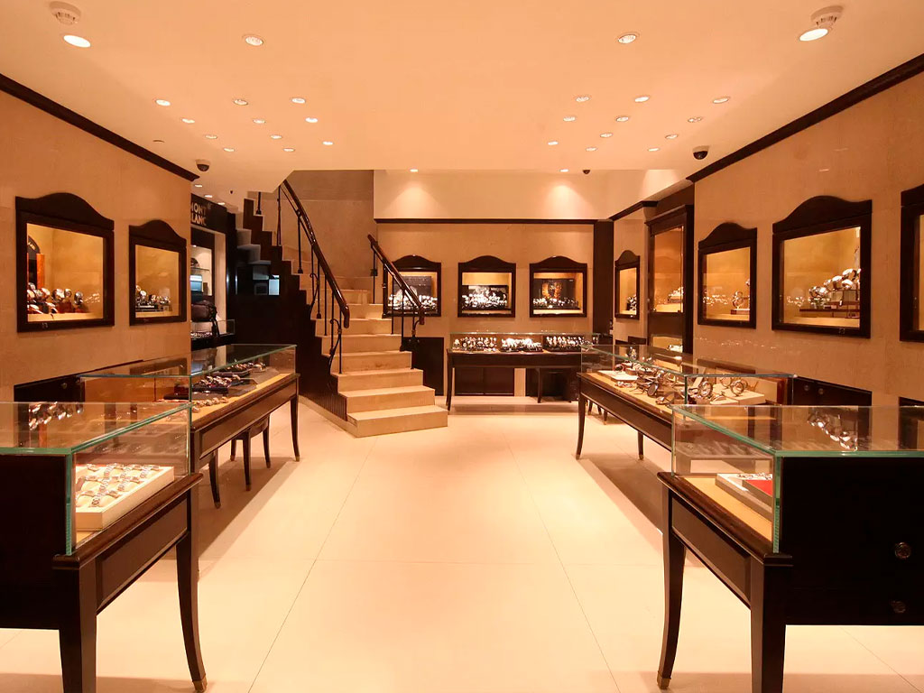 Что касается отделочных материалов и цвета торгового зала, то здесь лучше отдать предпочтение нейтральным оттенкам, которые подчеркнут блеск металлических ремешков и корпуса аксессуара, а также сияние камней и прочих элементов отделки.