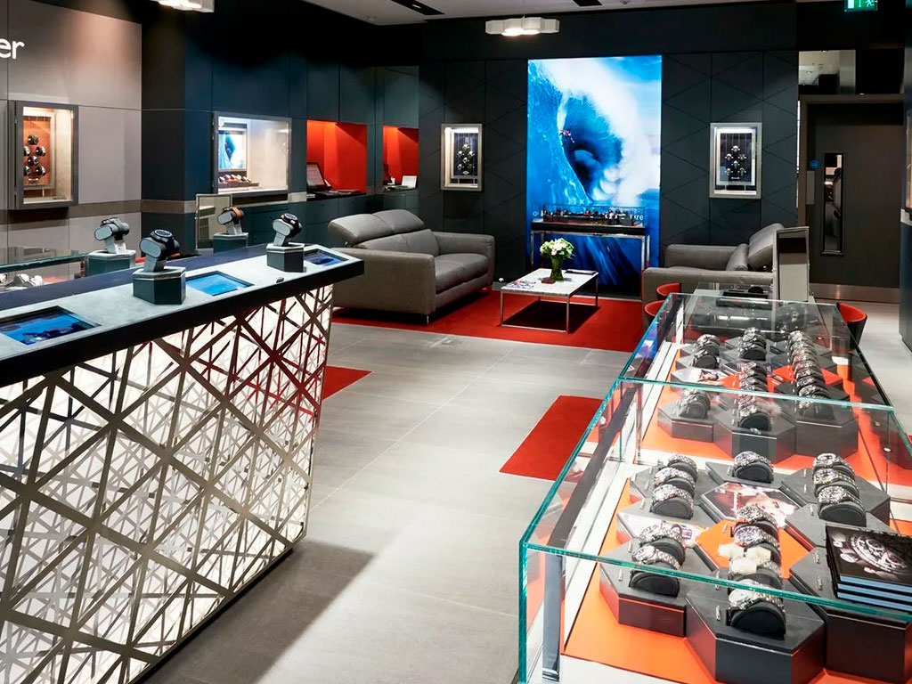 Обычно в часовых бутиках устанавливаются закрытые горизонтальные или вертикальные витрины. Однако специализированной мебели недостаточно, чтобы привлечь внимание к эксклюзивным товарам. Чтобы сделать акцент на реализуемых аксессуарах, обычно используются два эффективных инструмента: