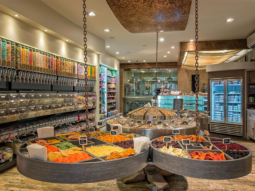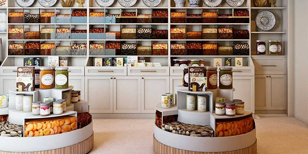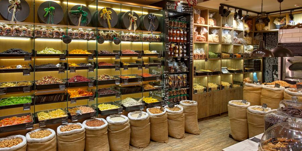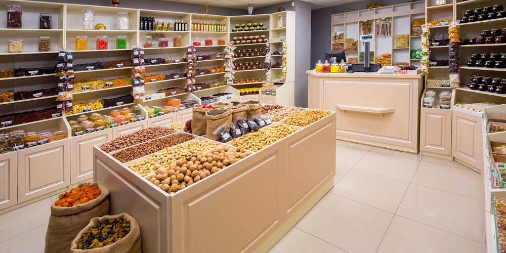 Продажа продуктовых изделий – наиболее широкая сфера для действий в плане влияния на поведение клиента. Хорошо подобранный интерьер помещения, привлекательные аппетитные запахи и сам вид еды – всё это можно вызвать в посетителе желание сделать покупку, даже если изначально человек об этом не думал. Поэтому дизайн магазина сухофруктов требует особого внимания, и его разработкой не стоит пренебрегать.
