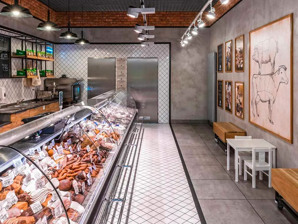 Создание грамотного дизайн-проекта сыграет огромную роль в формировании постоянной клиентской базы и стабильно высоком уровне спроса на реализуемую продукцию. Разрабатывая интерьер торгового помещения, важно учитывать все потребности посетителей, а ещё лучше представить себя на их месте и подумать, чего Вы сами ожидаете от идеального мясного магазина. Такой прием поможет оформить пространство максимально привлекательным и запоминающимся. А это один из главных пунктов в обеспечении большого количества продаж.