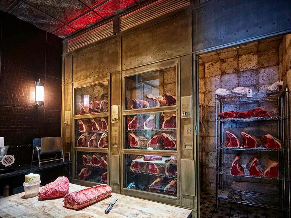 Лофт характеризуется использованием «грубых» отделочных материалов, таких как камень, кирпич и металл. Обычно добыча и разделывание мяса на уровне первобытных инстинктов ассоциируется с представителями мужского пола, так же, как и данные «суровые» материалы. Поэтому, выбрав данный стиль, можно создать гармоничный интерьер магазина мяса.