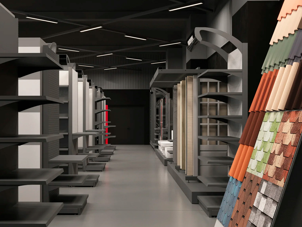 Задача дизайн-проектаДизайн магазина строительных материалов – сложная с технической точки задача. Для решения такой важно учесть большое количество нюансов, каждый из которых направлен на оптимальное использование свободной площади, удобное расположение реализуемой продукции и повышение объемов продаж.