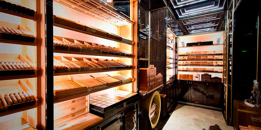 Стим-панк больше относится к современному представлению о табачных магазинах. Темные оттенки с яркими акцентами, непредсказуемые элементы декора типа медных или латунных деталей, общая стилистика лофта с его кирпичными кладками и т.д. На стенах здесь можно изобразить дым или курящего человека, что придаст интерьеру запоминающуюся изюминку.