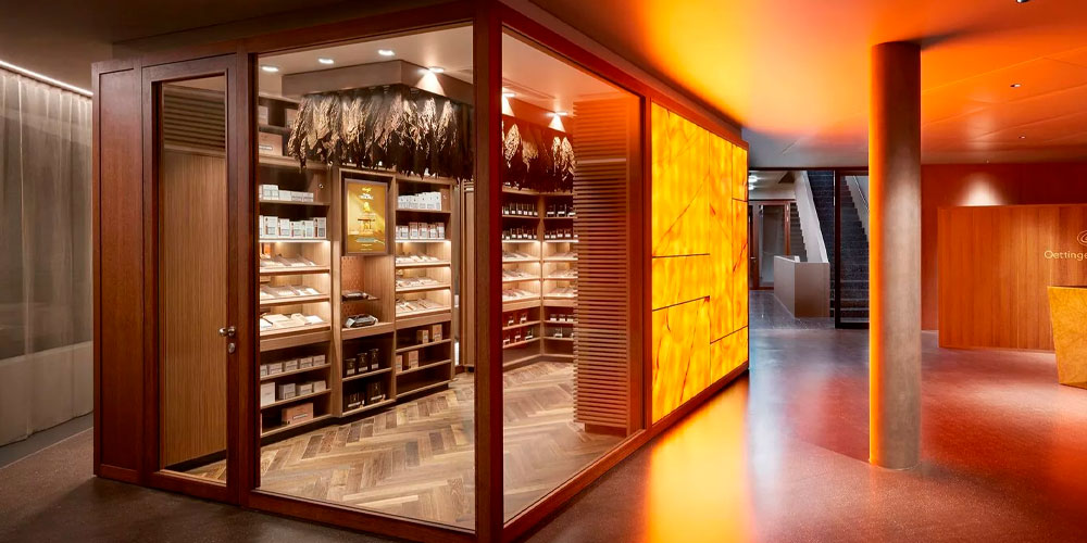 Дизайн магазина табака характеризуется сдержанной цветовой палитрой, приглушенным светом и склонностью к минимализму. Изначально использование данной продукции было прерогативой мужчин: простых рабочих или гангстеров и бандитов. Поэтому в оформлении интерьера стоит придерживаться именно этого настроения и атмосферы. Табачный магазин, выполненный внутри, например, в розовых или ярко-оранжевых тонах, будет выглядеть странно, комично и неуместно.